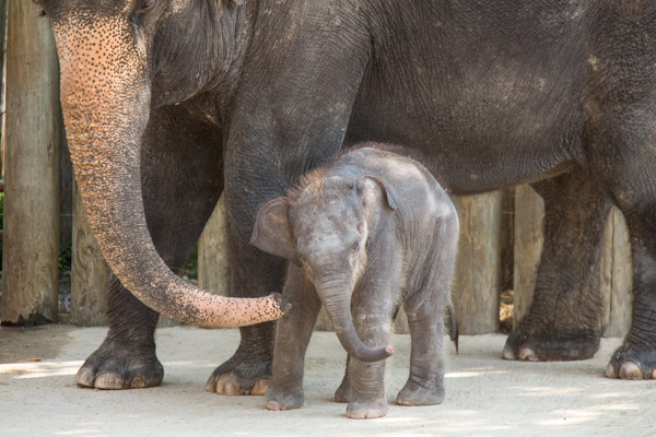 My daughter, Rachel, came from Midland for the weekend, and we thought it would be fun to go to the zoo to see the newest baby. We got there for the last showing at 3:30, but Bowie was not out. Belle and her mom, Rasha were out again. Belle is just so cute and I’m glad that Rachel saw her, but we were hoping to see Bowie too. I talked to the Zoo Specialist, Kari, and she said that Bowie (pronounced Booey, I am from NJ and that’s not how we would pronounce it, but that’s his name and I have to get used to saying it that way) needed some extra bonding time with his mom, Bluebonnet. They aren’t sure when he will be out, the Zookeepers make the decision daily as to whether or not Bowie and Bluebonnet can come out. I decided that I will come every day until I can see him, so I thought it would be best to become a member of the Fort Worth Zoo. The office was closed by the time we got there (the zoo closes at 5pm in September) so I’ll do it next week. Belle is still so cute and fuzzy but she’s already over 400 lbs! Looking at her, it’s kind of hard to believe because next to Rasha she is so tiny. Colonel, the two-tusked male, was out today. I don’t normally see more than one male there, but sometimes they are both together and sometimes Angel (the other female) joins them too.