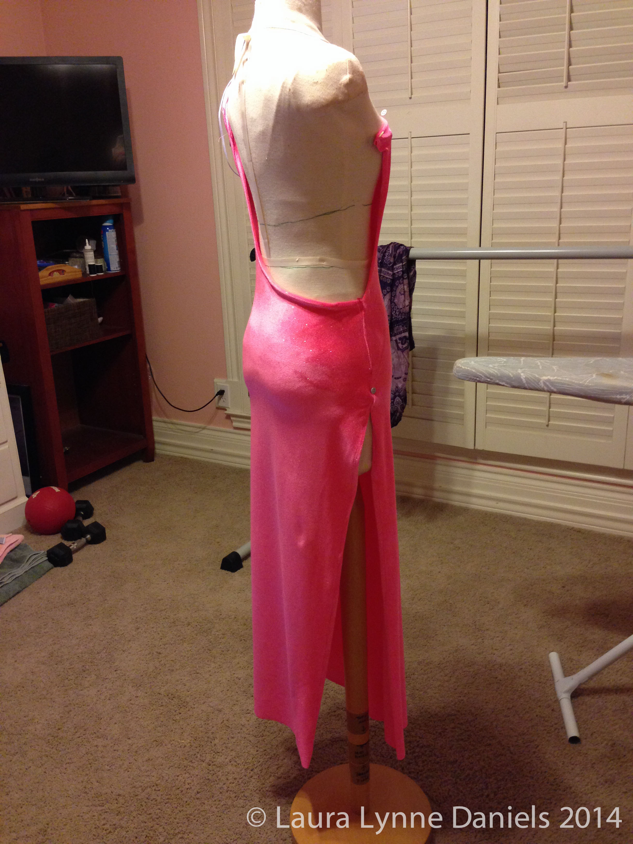 While I tried the dress on, I started playing around with the style and I decided to make it a shorter dress. It would be easier to dance in and I think it was actually prettier.