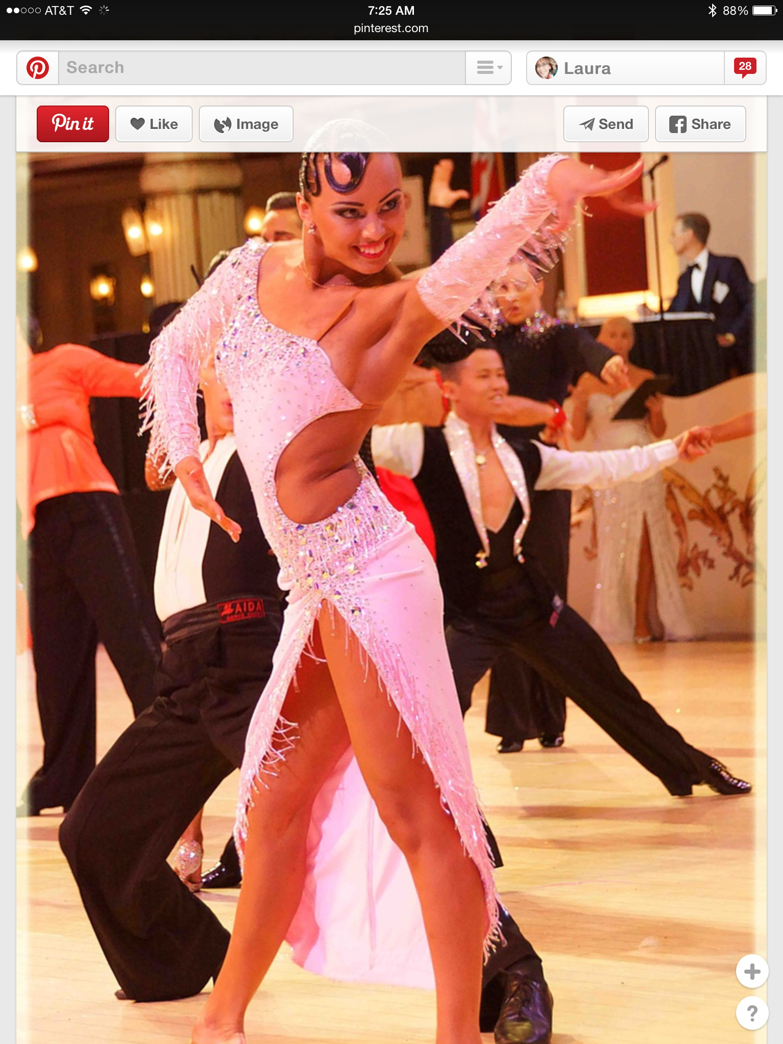 I have to find a rhinestone necklace, I would like one that drapes down the back… I have rhinestone earrings that will be good with this. This week, I’ll check the bridal stores to see if they have something….. And hair.. I have no idea what to do with my hair… so I have an appointment with my favorite hairdresser ever, Ramiro Gonzalez in Dallas on the day before the showcase. He works with doing ballroom hair so he will be perfect to help me figure this out.