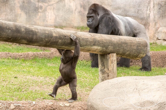 The zoo opened at 10, and itโs a little bit of a walk from admission to MOLA, so it took about a half hour for visitors to come to MOLA. ย On the way to MOLA are the gorillas. ย Theyโre always fun to watch, especially when little Gus is out. The flamingos and other animals are are also on the way, so people stop along the way and take their time.